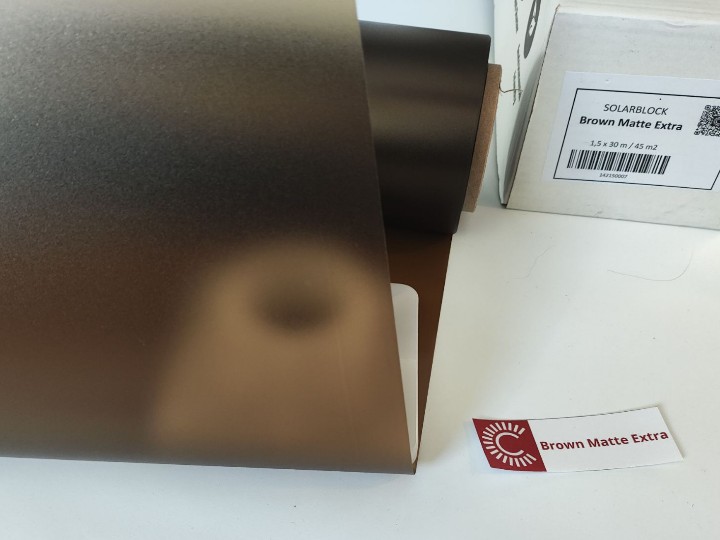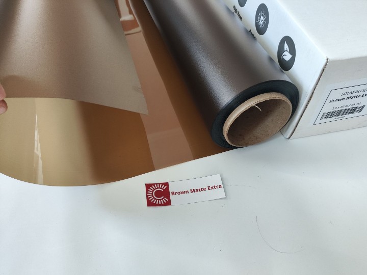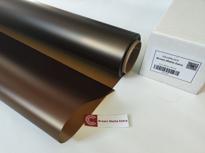 Brown Matte - полупрозрачная коричневая матовая пленка без зеркального эффекта на обычном лайнере. Почти не затемняет помещение - светопропускание 38%. Пленка Brown Matte не выгорает на солнце, долговечна, отражение тепловой энергии 35%. Коричневый цвет в психологии является лучшим способом побороть стресс или хандру. Коричневый не только оказывает успокаивающий эффект, но и способствует повышению самооценки и уверенности в своих силах, придает чувство стабильности и благонадежности. Аналог Matt FROST BRONZE.