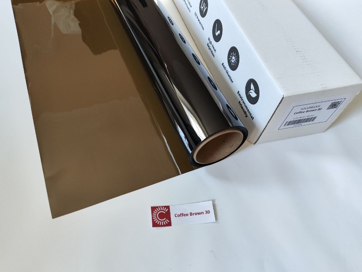 Coffee Brown 30% - прозрачная бронзовая пленка с коричневым оттенком без зеркального эффекта. Не затемняет помещение. Кофейно коричневая пленка подходит и для внутренней тонировки стекол в помещении и для декоративного тонирования окон зданий. У пленки легкий бронзовый оттенок без создания зеркала. После монтажа создается приятный солнечный вид из окна. При мыслях об этом цвете возникают ассоциации следующие: ароматный дымящийся кофе, сладковатый манящий запах какао, терпкость цейлонского чая, волшебный вкус горького шоколада, ласковое таяние на языке шоколада молочного, дерзкий запах специй и корицы. Коричневый цвет ассоциируется с натуральностью и простотой. Этот цвет подталкивает к воспоминаниям о вечерних посиделках у камина, отбрасывающего рыжие отблески на стены, уюте загородного дома. Коричневый цвет ассоциируется со здравым смыслом, надёжностью, устойчивостью. Этот цвет символизирует тягу к стабильности и постоянству, и потому возможно люди, выбирающие этот цвет, хотят отдохнуть от суеты, городской жизни, от нерешенных проблем. Это цвет людей, стремящихся к стабильности и покою, старающихся избежать риска и резких перемен в жизни.