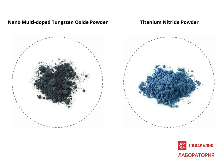 Indium Tin Oxide (ITO) - среди всех нанокристаллических материалов, используемых в массовом производстве оконных пленок, оксид индия и олова обеспечивает наивысшее снижение тепла и максимальное пропускание видимого света при высоких температурах. В странах со строгими правилами тонирования автомобилей Indium Tin Oxide остается единственным возможным материалом с высокой теплозащитой. Antimony Tin Oxide (ATO) - оксид сурьмы и олова был успешно синтезирован и массово произведен японскими производителями в конце 1990-х и начале 2000-х годов. Сегодня Antimony Tin Oxide является наиболее широко используемым керамическим наполнителем из-за существенно более низкой стоимости, чем Titanium Nitride, учитывая то же снижение температуры. Titanium Nitride (TiN) - нитрид титана был самым ранним типом керамической пленки в отрасли. Обычно наносимый на пленки спаттерным методом, Titanium Nitride был и является самой популярной теплозащитной пленкой с высокой степенью отражения тепла, но его использование остается ограниченным из-за высокой стоимости. Ожидается, что Advanced Borides - продвинутые улучшенные бориды (бинарные соединения бора с металлами) станут следующим поколением наноматериалов для оконных пленок. Новые Advanced Borides значительно увеличат диапазон волн для отражения инфракрасного излучения, а текущие испытания на атмосферостойкость показали возможность длительной эксплуатации. Появился инновационный материал оксид вольфрама цезия, применение которого позволяет неорганическим красителям и керамике создавать пленку с высоким теплоотражением, обеспечивая при этом низкую мутность и блики по сравнению с другими химвеществами, отводящими тепло. Специальная технология измельчения Nano Tungsten Oxide Powder, уменьшающая размер частиц до 10 нм способствует прозрачности конечного продукта. Такая эффективная смесь находится между двумя слоями полиэстера высокой четкости.