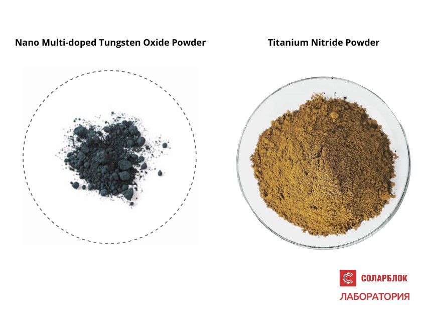 Indium Tin Oxide (ITO) - среди всех нанокристаллических материалов, используемых в массовом производстве оконных пленок, оксид индия и олова обеспечивает наивысшее снижение тепла и максимальное пропускание видимого света при высоких температурах. В странах со строгими правилами тонирования автомобилей Indium Tin Oxide остается единственным возможным материалом с высокой теплозащитой. Antimony Tin Oxide (ATO) - оксид сурьмы и олова был успешно синтезирован и массово произведен японскими производителями в конце 1990-х и начале 2000-х годов. Сегодня Antimony Tin Oxide является наиболее широко используемым керамическим наполнителем из-за существенно более низкой стоимости, чем Titanium Nitride, учитывая то же снижение температуры. Titanium Nitride (TiN) - нитрид титана был самым ранним типом керамической пленки в отрасли. Обычно наносимый на пленки спаттерным методом, Titanium Nitride был самой популярной теплозащитной пленкой с высокой степенью отражения тепла, но его использование в настоящее время остается ограниченным из-за высокой стоимости. Ожидается, что Advanced Borides - продвинутые улучшенные бориды (бинарные соединения бора с металлами) станут следующим поколением наноматериалов для оконных пленок. Новые Advanced Borides значительно увеличат диапазон волн для отражения инфракрасного излучения, а текущие испытания на атмосферостойкость показали возможность длительной эксплуатации. Появился инновационный материал оксид вольфрама цезия, применение которого позволяет неорганическим красителям и керамике создавать пленку с высоким теплоотражением, обеспечивая при этом низкую мутность и блики по сравнению с другими химвеществами, отводящими тепло. Специальная технология измельчения Nano Tungsten Oxide Powder, уменьшающая размер частиц до 10 нм способствует прозрачности конечного продукта. Такая эффективная смесь находится между двумя слоями полиэстера высокой четкости.